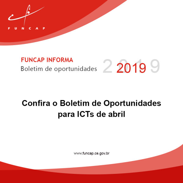 A edição de abril do Boletim de Oportunidades para Institutos de Ciência e Tecnologia está disponível aqui. A publicação é produzida pelo Núcleo de Inovação Tecnológica da Faculdade Luciano Feijão.