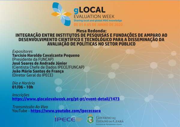 Será realizada, no próximo dia 1º de junho, a mesa redonda online “Integração entre institutos de pesquisas e fundações de amparo ao desenvolvimento científico e tecnológico para a disseminação da avaliação de políticas no setor público”. Realizado pela Funcap em parceria com o Instituto de Pesquisa e Estratégia Econômica do Ceará Ipece), o evento irá abordar como os processos de avaliação, através da análise de dados, permitem mensurar se as políticas públicas tiveram o alcance e o impacto desejados. Com isso, eles se tornam uma ferramenta valiosa para os gestores públicos, nas tomadas de decisão. Um dos objetivos da mesa redonda é disseminar a importância da avaliação, nos governos, através da integração entre centros e fundações de pesquisa.