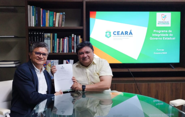 Na segunda-feira (14/10), a Funcap, órgão vinculado à Secretaria de Ciência, Tecnologia e Educação Superior do Ceará (Secitece), recebeu representantes da Controladoria e Ouvidoria Geral do Estado (CGE) para a apresentação do Programa de Integridade do Poder Executivo Estadual. Na ocasião, a Funcap renovou sua adesão à iniciativa, reafirmando o compromisso com a ética, a transparência e a boa governança. O ato contou com a presença do secretário executivo de planejamento e gestão interna da CGE, Marconi Lemos, e do presidente da Funcap, Raimundo Costa.